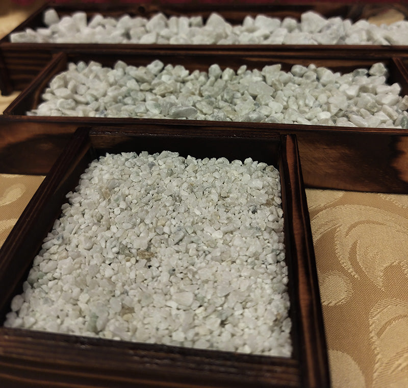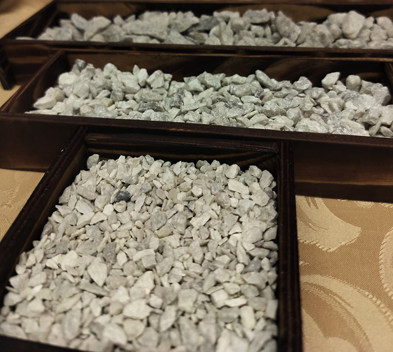 Här ingår alla 3 fraktionerna från alla 3 stensorter, vilket skapar en fullständig palett av texturer, färgnyanser och naturliga variationer.