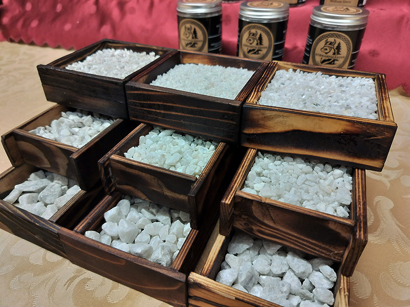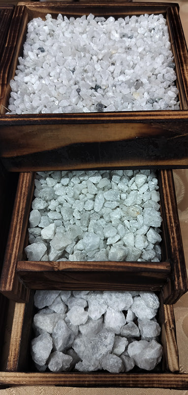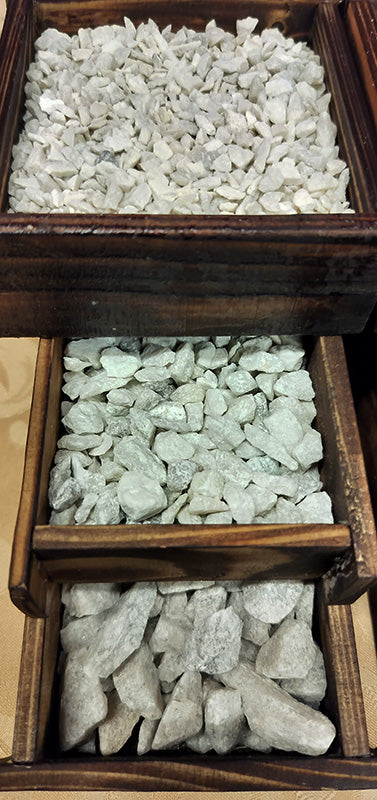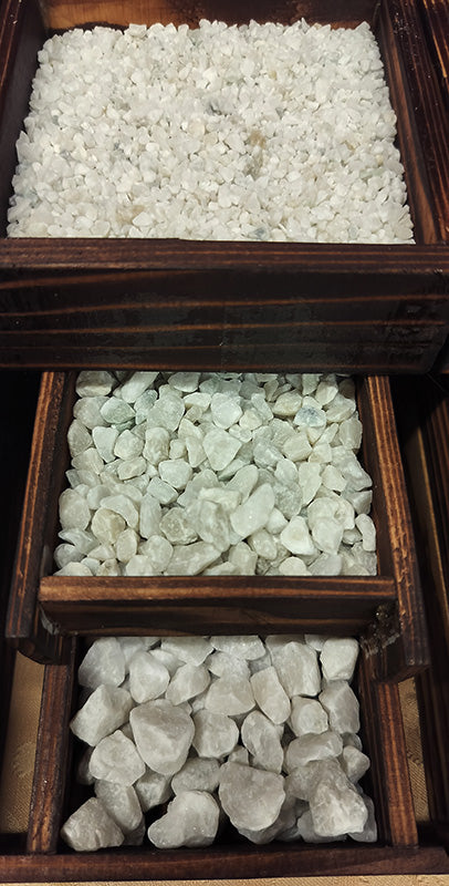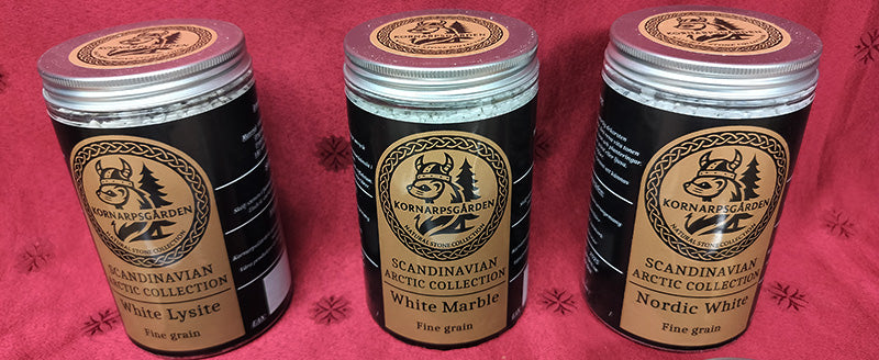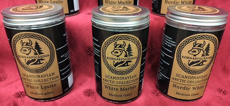 Setet innehåller tre stensorter, med en fraktion per sort, vilket ger en komplett och välbalanserad överblick över kollektionens textur och färgspel.