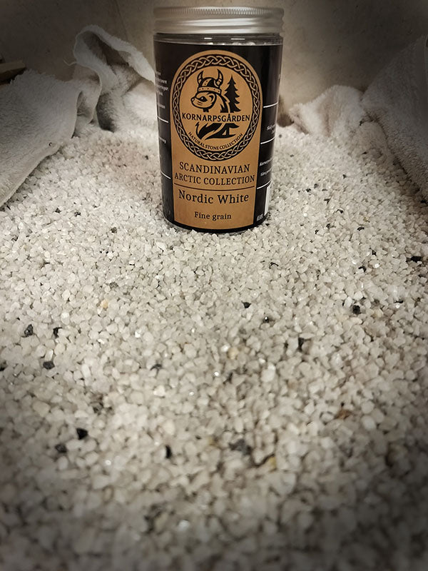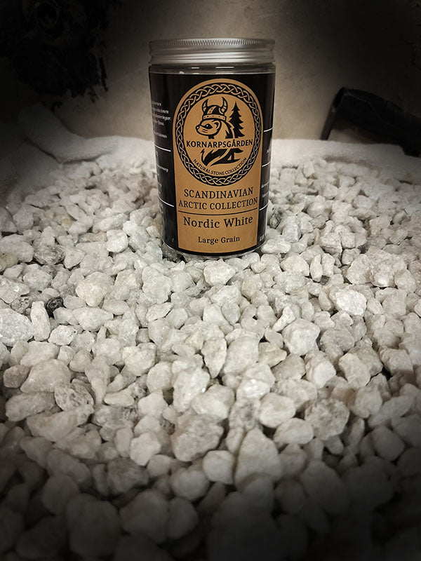 Nordic White är en sten som fångar ljuset på ett sätt som både lyfter och lugnar, perfekt för ljusfat, dekorationer eller som en ren naturdetalj i hemmet.