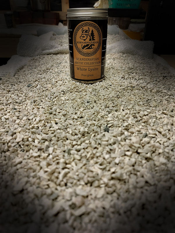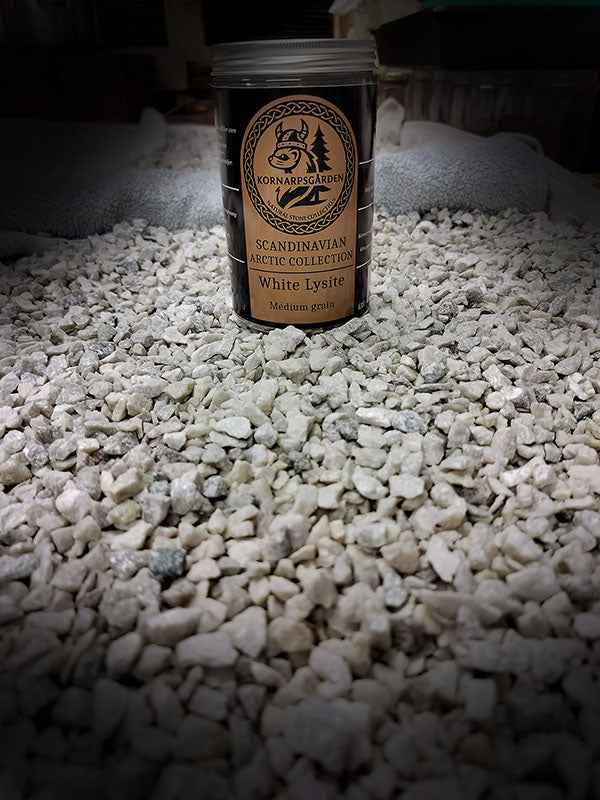 White Lysite är en natursten med ett unikt, cloudy och mjölkigt uttryck, som ger en mild och elegant närvaro i varje arrangemang.